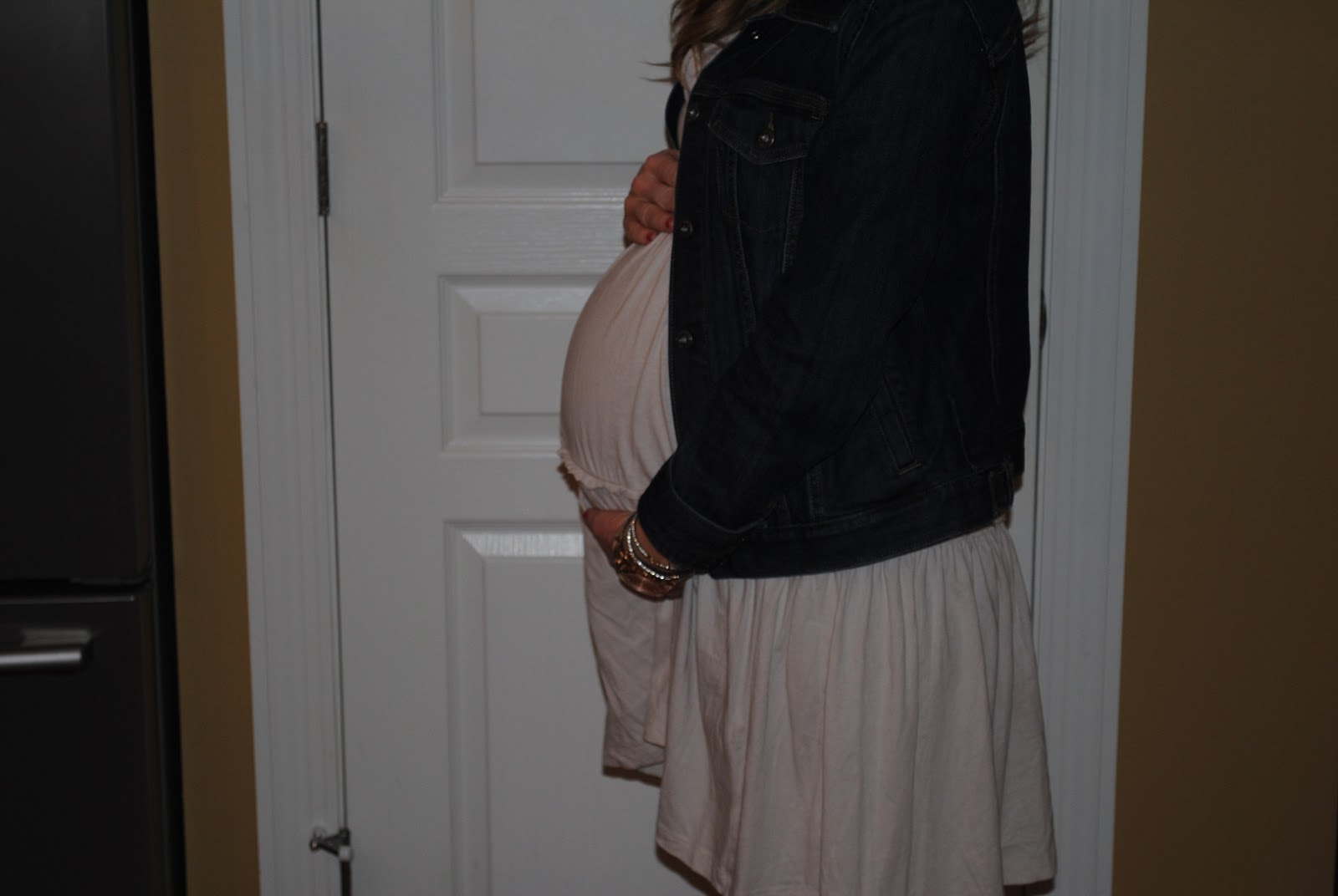 She's almost here!!!! You look stunning, as usual!! Still only growing mostly in the belly. Lucky you! My friend had her son last week, she was about 4cm when her water broke… You're close!!!! Happy bday to your hubby π Can't wait till the next post– I know it's going to be all about your baby!!