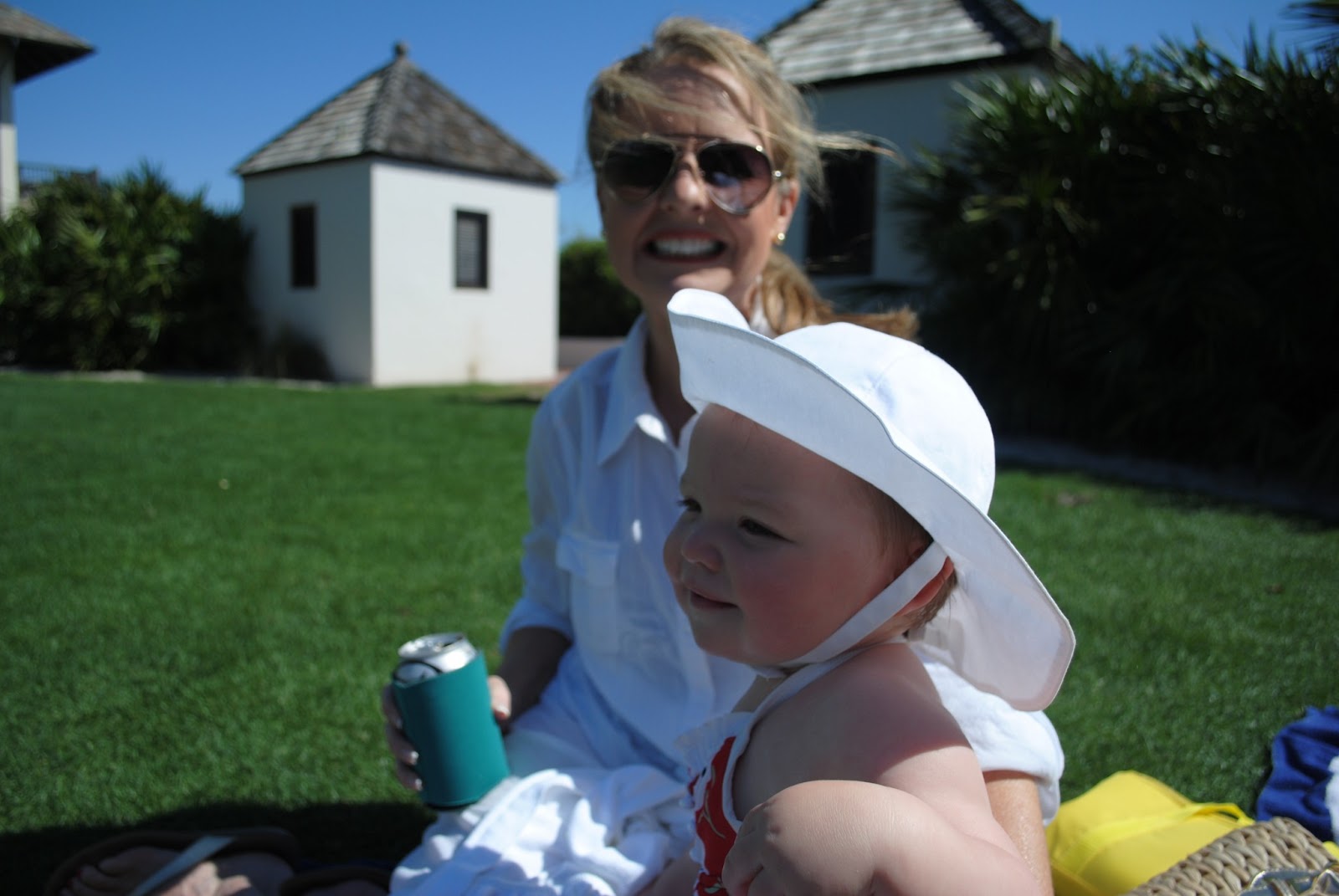 Aunt Meg arrived in town bright and early Friday morning so Jeff headed over to the airport to pick up our precious cargo. We spent the morning at the beach, dined at the Cowgirl Kitchen for lunch, and then spent the afternoon lounging on the lawn and taking a dip in the pool. That night, Meg’s dad Bob came over for an al fresco dinner with us and we had a ball…never a dull moment with my “other family”!