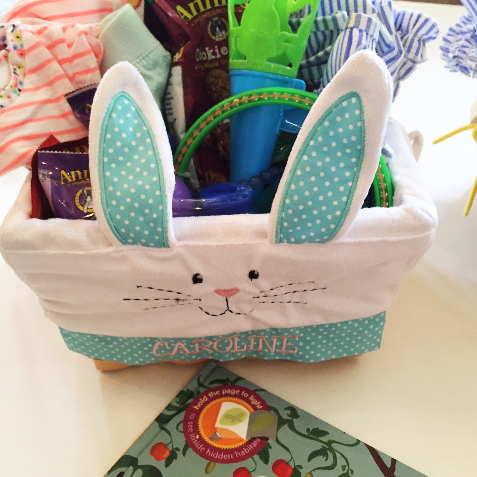 To start things off, we went the personalized route and got each of the girls a new basket with their names embroidered on the basket liners… from