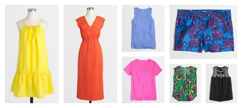 Color comes in many forms, but my favorite bold tones come from JCrew and their Factory Store is having a major 50% off sale in store this weekend! I popped into our local shop the other day and stocked up on a few casual essentials including tanks and a few more pair of my favorite boardwalk shorts… rounded up a collection of pretties in case you’ve been eyeing some festive frocks for summer, too!