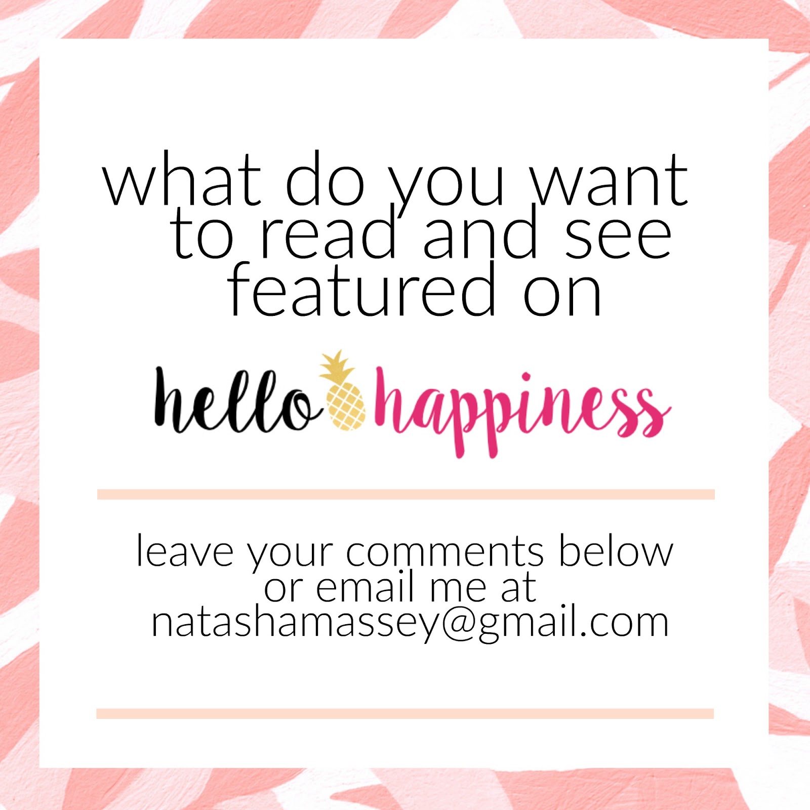 More fashion outfit of the days, workout tips & regimen, home decor tour guide of your beautiful home, a look into your day… I love your blog and I love when you get personal!!