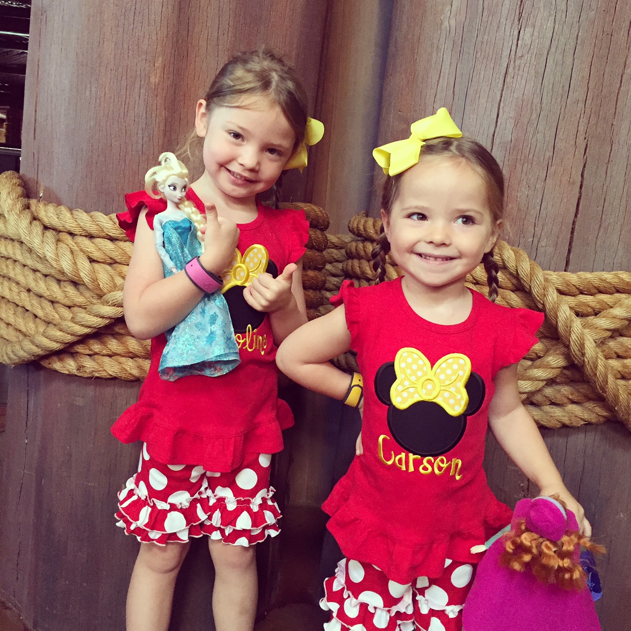 I have so enjoyed reading your Disney posts and all the pics! We are going later this month!! I also ordered the castle home Ts! Random, but can you share the details on your necklace – it appears to have your girls names on it…. Thanks!! Jodie