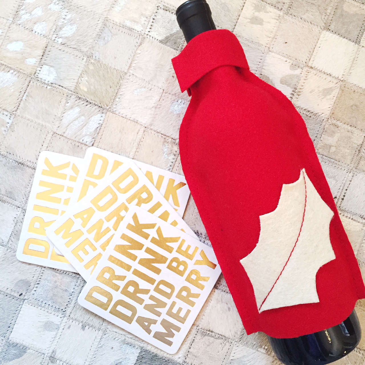 Still looking for the perfect holiday gifts and goodies for entertaining?? I scooped up these adorable Recycled Gold Gift Tags, a Holiday Tree Dessert Plate Set, these Bamboo Merry Merry Tags, Drink and Be Merry Coasters, and this cute Holly Leaf Wine Bottle Sweater.