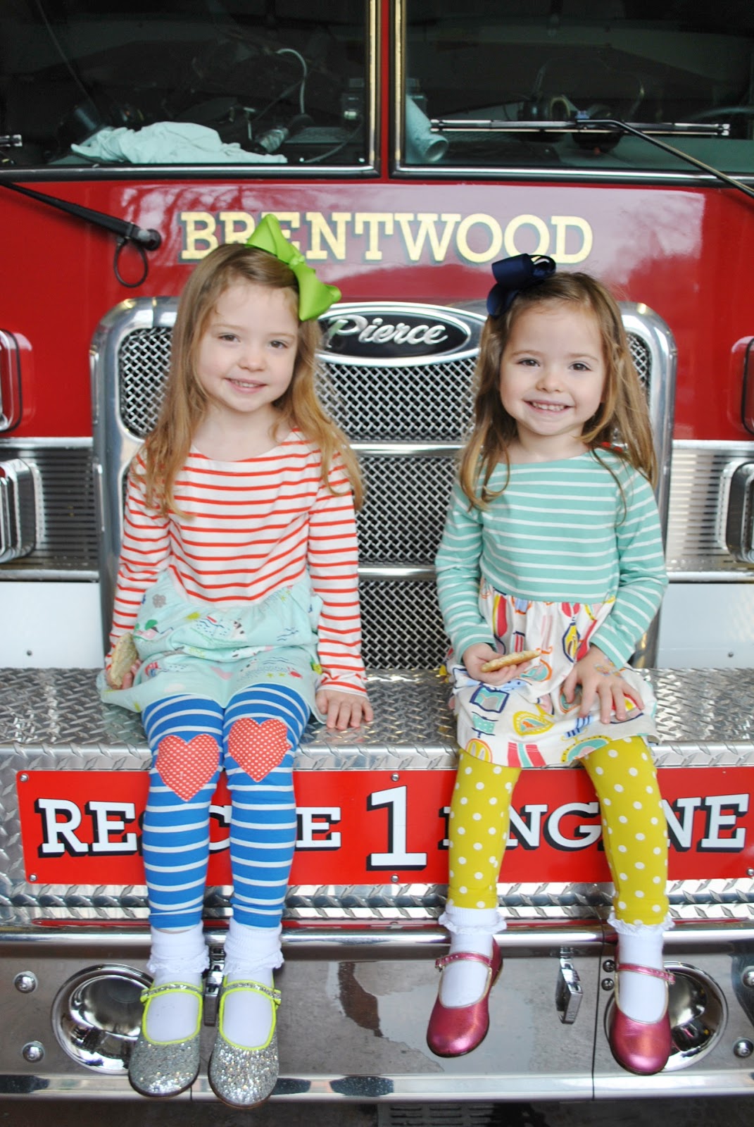This season’s collection features a superb “Hero and Rescue” theme, and it has meaning we can all be proud of… for our Saturday morning outing, we headed over to our neighborhood Brentwood Fire Department to drop off some special baked goodies the girls made for our local heroes [and yes, they might have “taste tested” some of our sprinkle cookies, too]. Showing Caroline and Carson from an early age that we can AND need to show our appreciation to others is a principal I hope they will continue to cherish as they grow and keep with them long after their childhood.