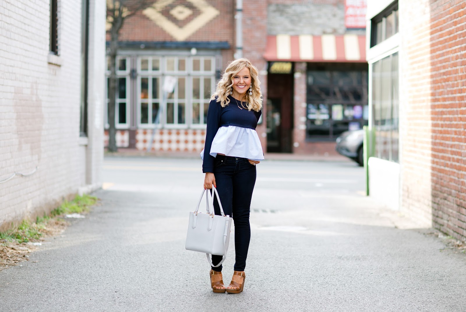 This peplum is too adorable! I’m loving the earrings too.
