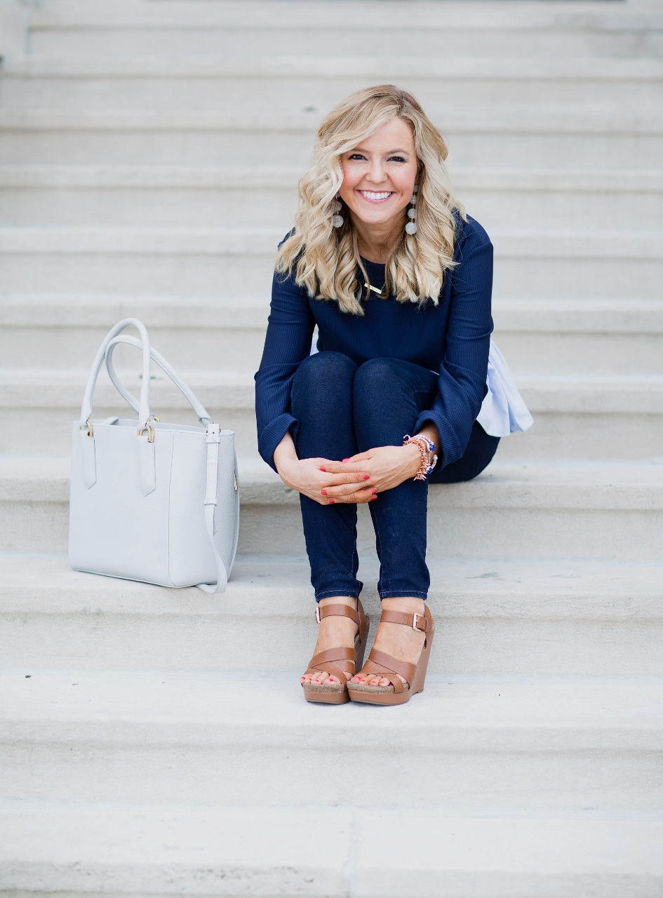 This peplum is too adorable! So perfect paired with the skinny jeans and wedges!