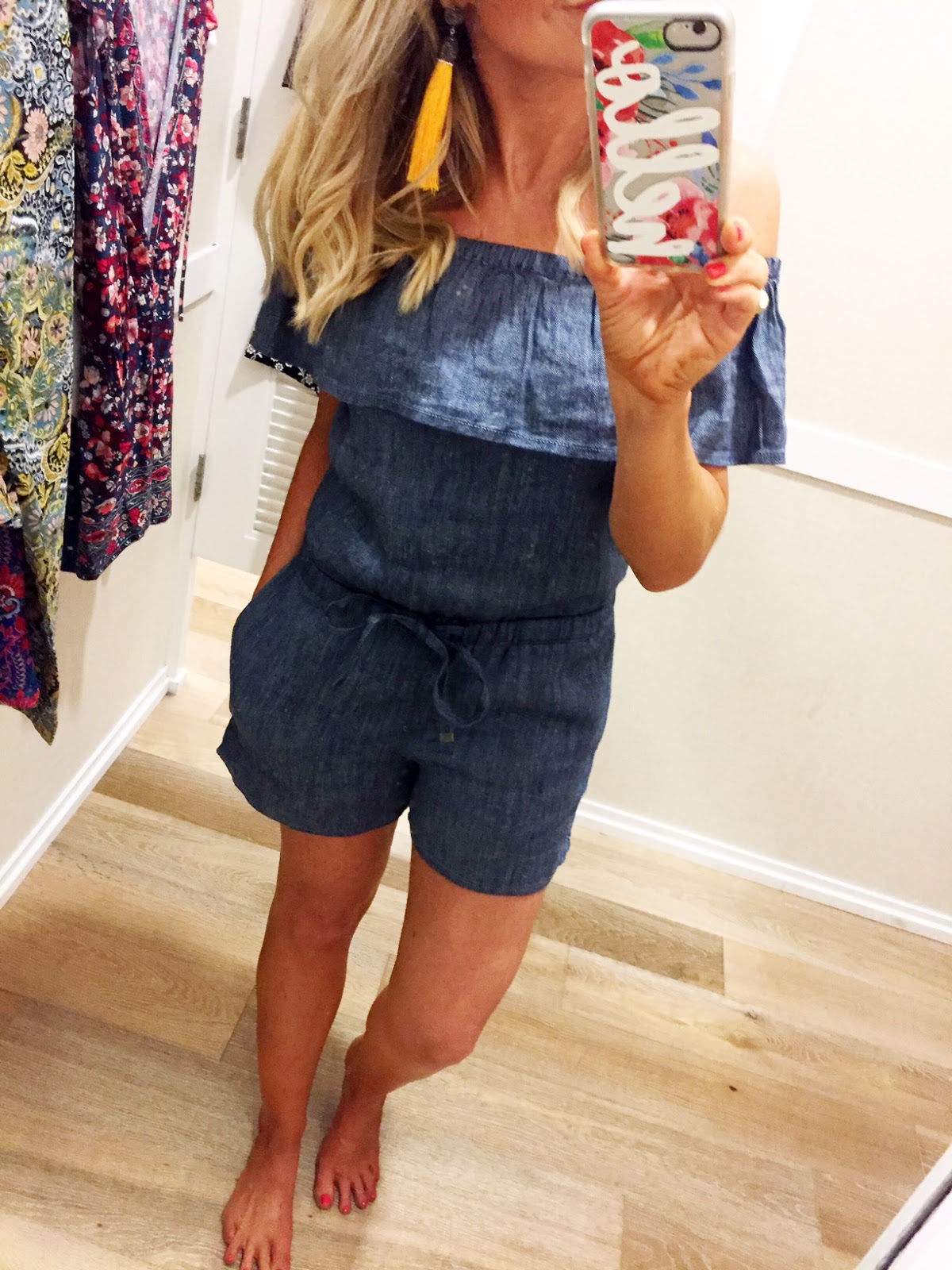 Did someone say chambray?!?! You know I can’t say no to the denim and this Off the Shoulder Romper was a must-have for my shopping bag… it’s definitely generous in the sizing so you may think about sizing down or going to the petite size if you’re smaller in stature like me!
