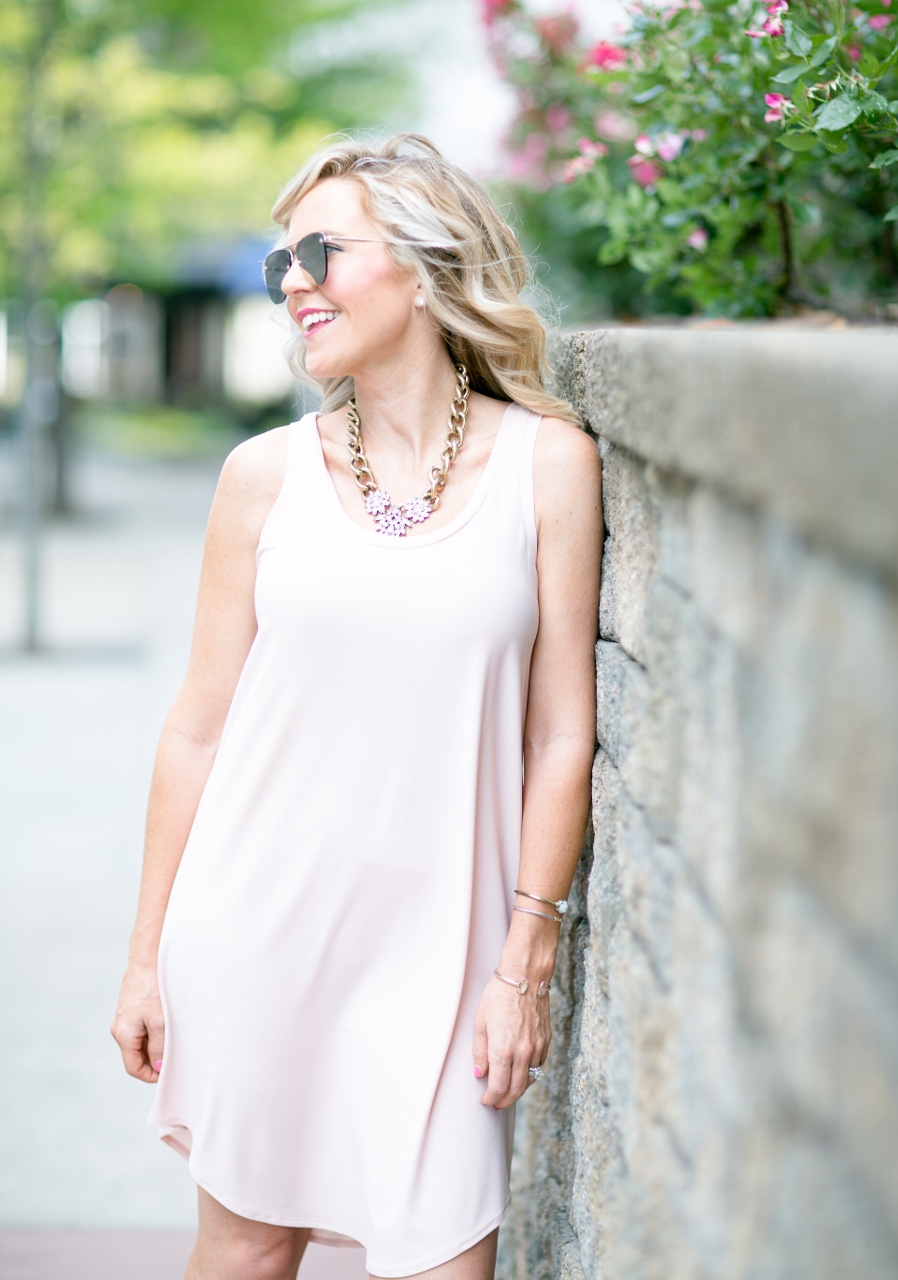 When you love a dress this much, you buy it in multiple colors… just like I did. I started with the Red Persimmon shade and wore it when I traveled to Dallas for the RSCon, but I decided I had to order it in the Pink Blossom colorway because I couldn’t get enough of this simple Racerback Shift Dress