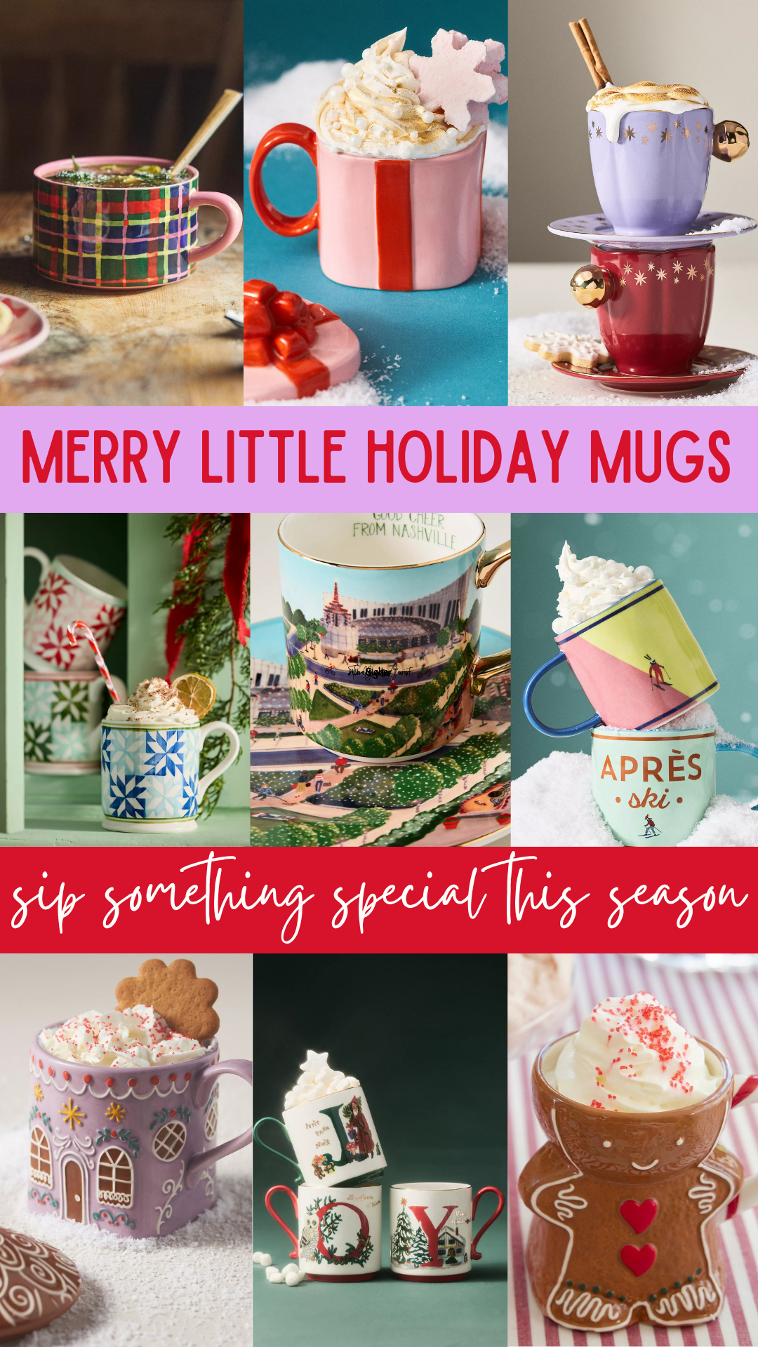 And finally, let’s face it… I have a mug addiction and I am not sad about it whatsoever! What better way to savor and sip your way through the cold days and nights than with the perfect coffee cup… This assortment just exudes holiday happiness and makes the perfect accessory for peppermint cocoa, spiced tea, a hot chai hoddy toddy or that early morning coffee break I need on the daily! These also make great stocking stuffers + co-worker gifts, too…