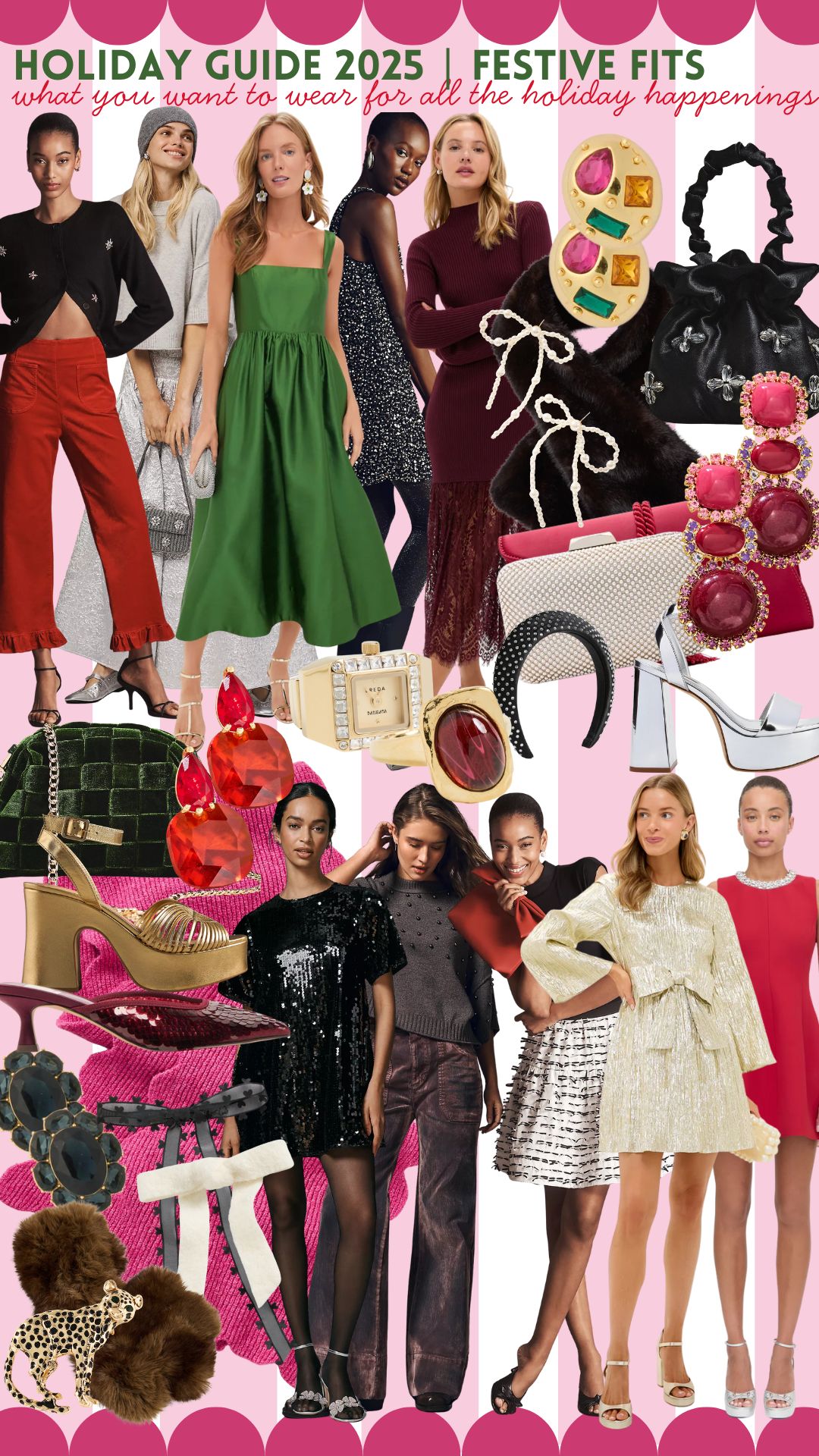 It’s officially the season of sparkle, soirées and saying yes to every festive moment = which means it’s time to pull out all the holiday-ready outfits. From chic cocktail looks to cozy-but-cute party pieces, I’ve rounded up my favorite ways to dress for every gathering on the calendar [which is full of fun get togethers from now until 2026]. Whether you’re hosting, heading to a girls’ night, or just love a good reason to get dolled up, these holiday looks bring all the merry + bright vibes. Let’s get dressed!!
