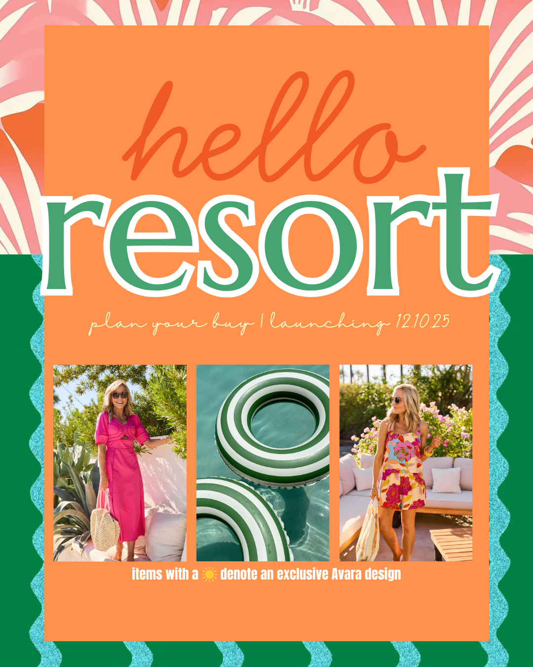 Sure, we’ve been there done that when it comes to spring, summer, fall and holiday = but this time we are thinking outside the box and going big for those of you who are jet setting off to surf, sun, sand and blue water after Christmas is over! Hello, Resort is all things you’ve come to expect from Shop Avara x me, but made even more fabulous when you’ve got some winter blues to cure. Sandy toes + statement clothes = that’s what Hello, Resort means to me.
